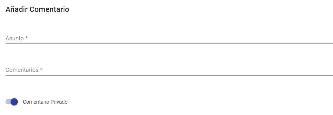 Añadir Comentario → Podremos realizar comentarios sobre la gestión de las comunicaciones, quedarán reflejados en el Timeline. Podremos hacer este comentario visible al Comunicador/Emisor en caso de que desmarquemos que se trata de un "Comentario Privado", en cuyo caso será visible en su Timeline. Si ese check queda marcado, solamente será visible por los gestores de la comunicación, al tratarse de un Comentario Privado.