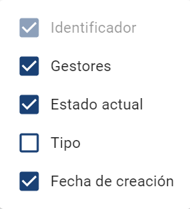 NOTA: Las columnas que se hayan seleccionado u ocultado, se mantendrán durante toda sesión.