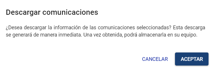Igualmente, es posible descargar esas comunicaciones seleccionadas, pulsando el botón "Descargar Comunicaciones".