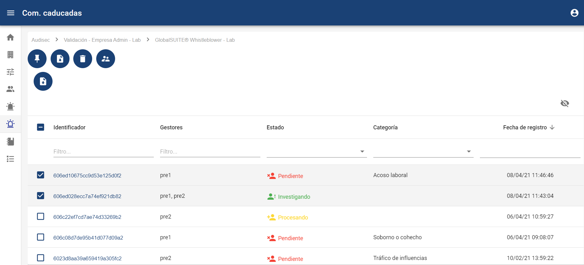 En esta vista, se pueden seleccionar múltiples comunicaciones de entre las que están caducadas.