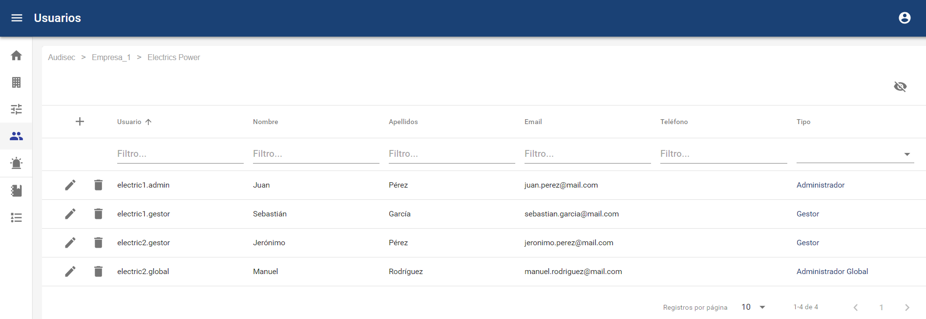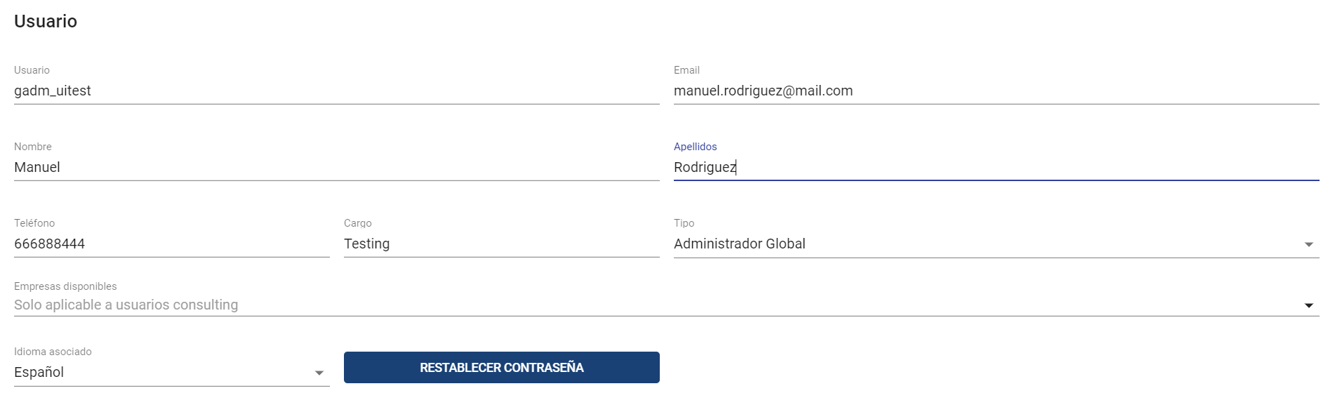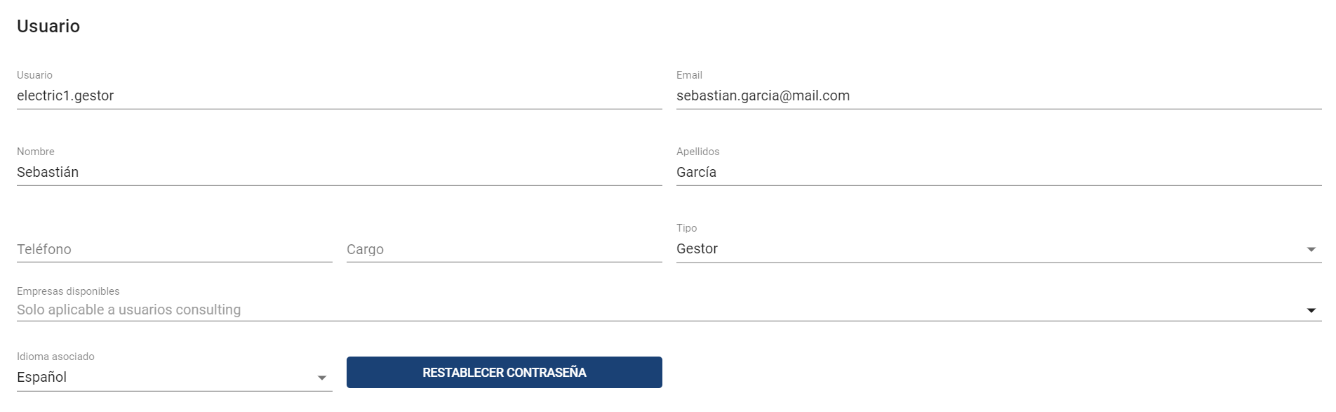 NOTA: Esta opción está disponible para los usuarios Administrador Global, Administrador y Consulting. Este último usuario sólo podrá crear usuarios de tipo "Gestor".