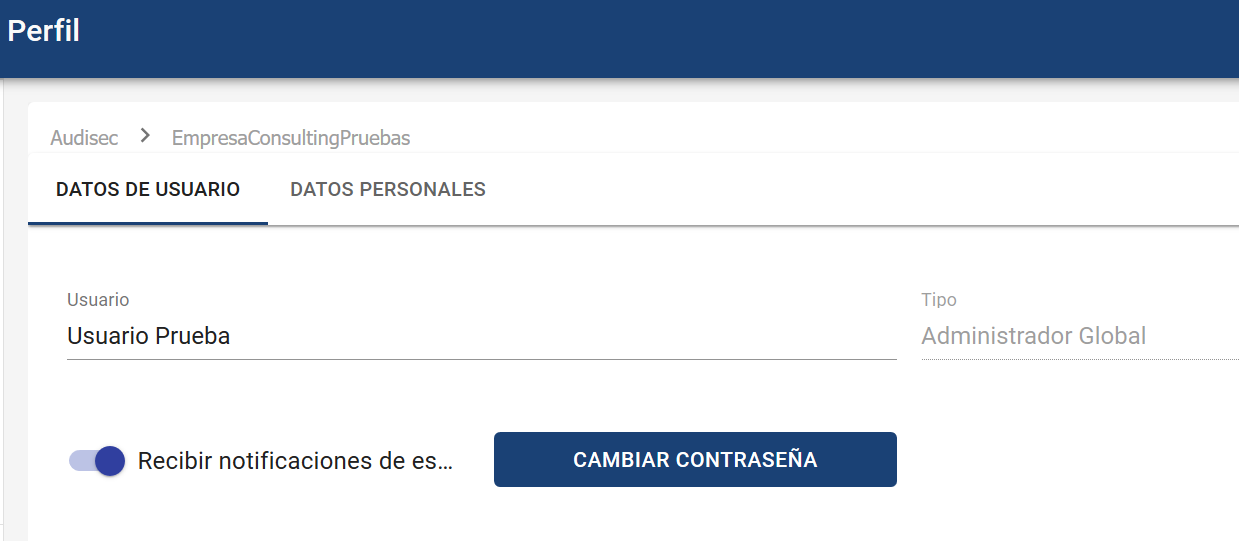 Esto únicamente es posible para los usuarios que acceden a través de autenticación local (con usuario y contraseña propios de la aplicación).