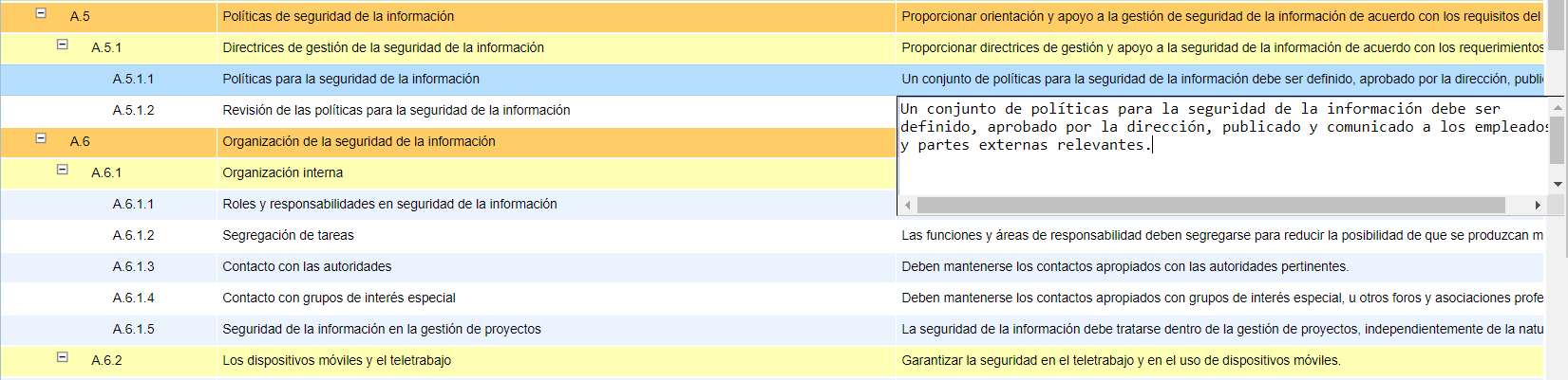 Finally, the "% Completeness" column allows indicating the associated compliance percentage for each level. This percentage is used by the tool to calculate the compliance charts associated with the "GAP Analysis" and "Compliance" options.