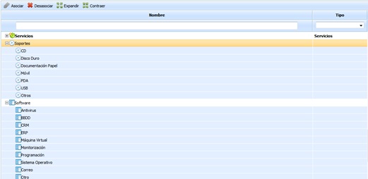Disassociate: Offers the possibility of removing a category/subcategory from an asset by selecting the desired row and clicking the 'Disassociate' button.
