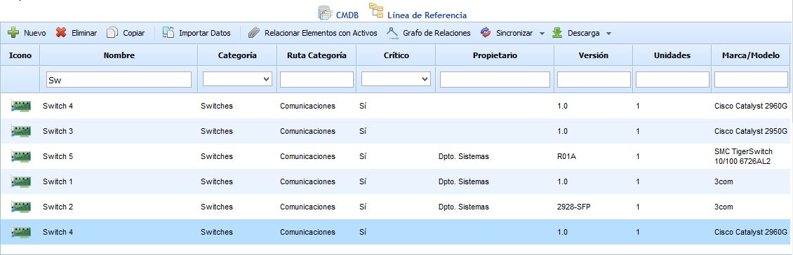 When accessing the CMDB section, a list is displayed with all the configuration items stored in the Database.