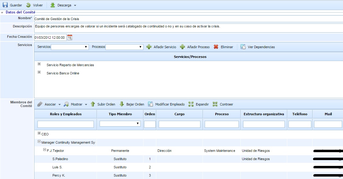 This option allows defining the organization's committees responsible for managing different aspects of security, continuity, risks, etc.