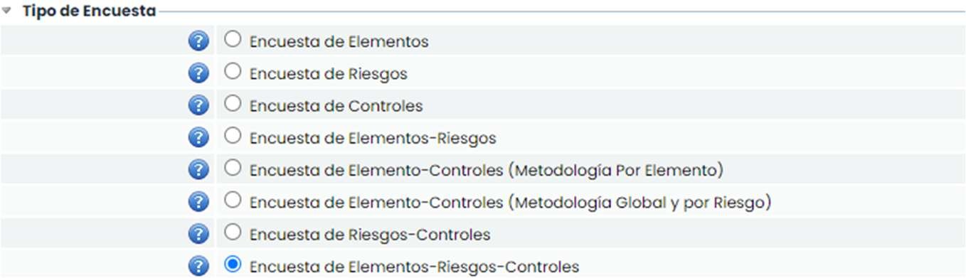 Finally, in the “ Control Survey” section, the control methodology associated with the selected risk methodology in the previous section is already marked.