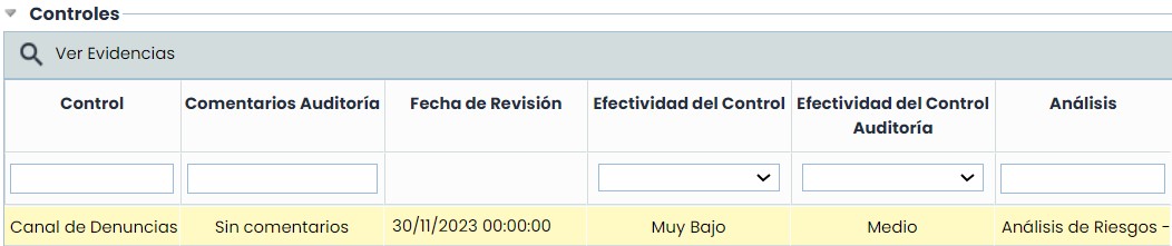 Para poder visualizar la información del punto anterior, se tendría que seleccionar el elemento de la primera tabla y posterior el riesgo específico para que se puedan visualizar los controles y las dimensiones a valorar.