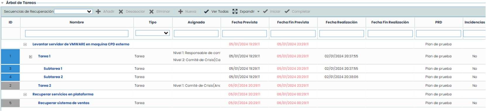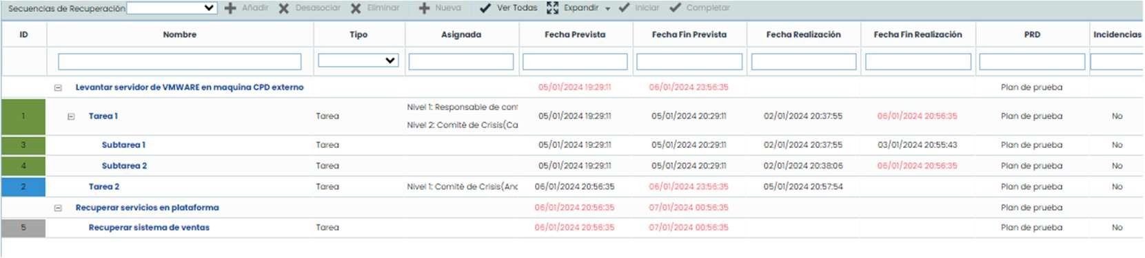 When selecting the recovery plan(s), the sequences with their different tasks, as previously configured in the “ Recovery Plans” option, will appear. To view these sequences, click on the plan for which you want to see the sequences.
