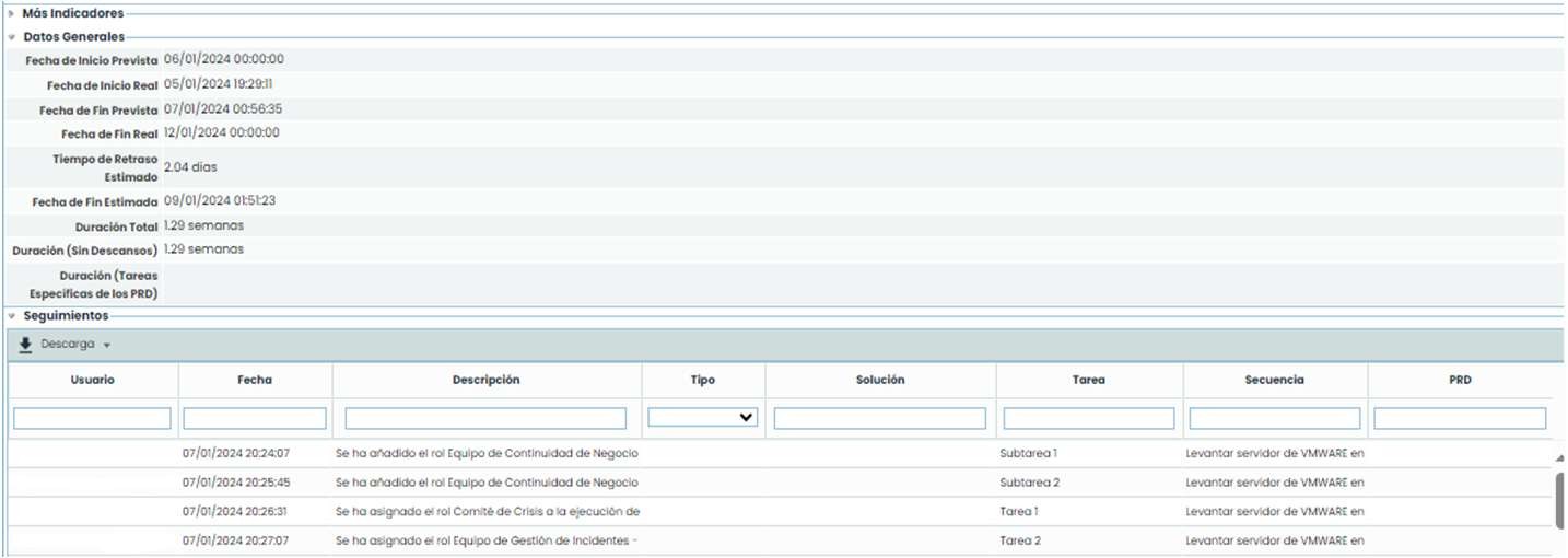 If any task has control points, they will appear in this option. The sequences with their progress and dates also appear. At the end, conclusions or the relationship of each task with a series of incidents, changes, corrective actions, if any occurred, are displayed.