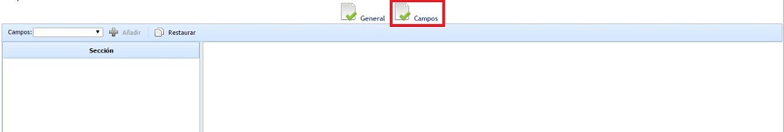 In the "Fields" tab, you can click on any of the sections to customize the fields that each of them will contain. By clicking on the section, a list of fields is displayed on the right side of the window. Clicking on a field will show information about it, which varies depending on the type of field. Below is a detailed description of the information you can find in the different fields, which may vary depending on the type of field.