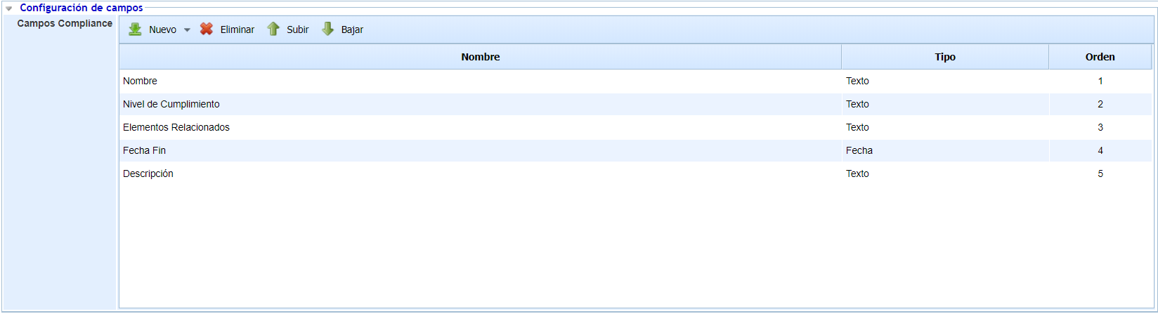 In this section, it is possible to configure which fields can be displayed in the main table of the Compliance option.