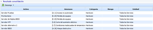 Consolidate: Once the button is clicked and based on the established filters, it allows you to view a summarized version of the assets in the table below.