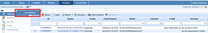 Consolidate: Once the button is pressed and based on the established filters, it allows you to view a summarized version of the claims in the lower table.