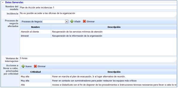Actions to be carried out, prioritized by criticality: Allows establishing all those tasks necessary to carry out restoration in an emergency situation.