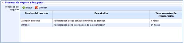 NOTE 1: To add any type of business process that will allow restoration through the model, these must be previously defined in the Business Processes option.