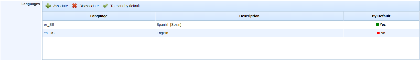 It allows you to select which languages from among those available in GlobalSUITE® will be used in the company, marking one by default. These languages will be in which you can configure the customizable parameters.