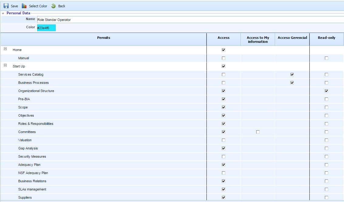 This option offers the possibility of managing the access by profiles to the different modules of the platform.