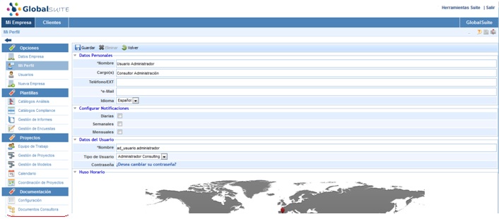 Language: It allows you to define the language of the platform. Currently, you can use GlobalSUITE in Spanish and English.