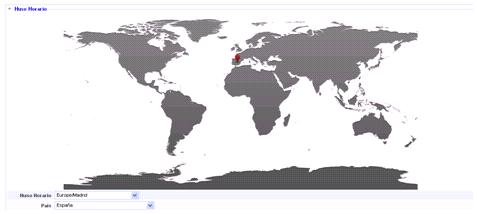 GlobalSUITE allows you to define the time zone you are at any time. This option offers the possibility to choose among all the continents and countries on the drop down menu situated on the bottom of the screen. Once selected the continent and country you have to click on the button ‘Save’ to keep the changes.