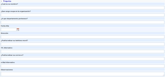 This section allows the user to answer those questions that have been defined in the 'Settings/Survey Models' section and configured in the 'Management/Survey Configuration' section, where it is established based on which model the employee survey is generated.