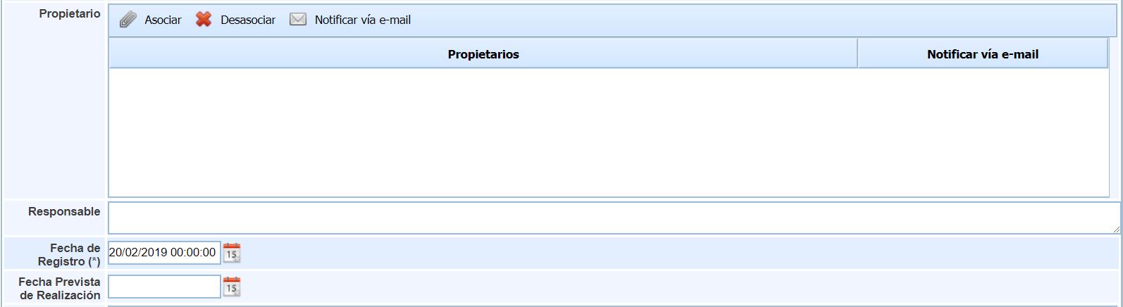 Owner: Indicates the person or persons who reported or need to follow up and be informed of the requirement's status. To select a new owner, click on Associate to choose from the system's employees. It also offers the possibility to Notify the user via email.