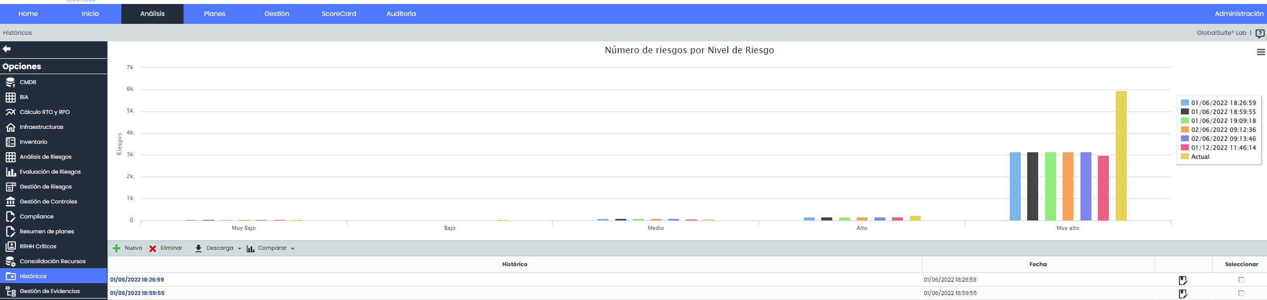 NOTE: The information displayed in the history option (General Information, Asset Inventory, Risk Analysis, Cost Analysis, etc.) has been developed in its corresponding section of this Manual.