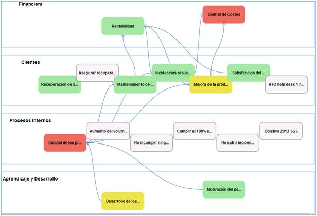 This option allows displaying the relationships between the different specific objectives defined and associated with the corresponding perspective.