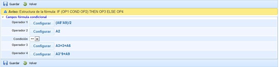 Once the condition formula is established, the results to be obtained must be set. If the condition is met, the results shown correspond to operator 3, and otherwise to operator 4.