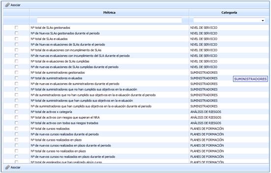The way to proceed to use them is similar to the case of indicators, first selecting those you want to use and associating them. In this way, they are included in the list of Metrics.