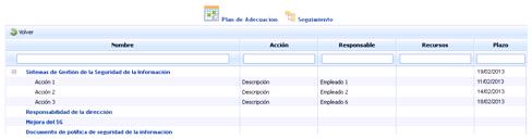 If we click on the name of the adaptation plan, we access a list with different actions to be carried out to correct the deviations from the initial analysis. The task list only shows those milestones defined as 'Not Implemented' or 'Partially Implemented' in the 'Gap Analysis' section.