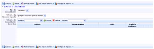 Save: Once the type of Consolidation (Manual or Automatic) is selected, it allows saving the selection made.
