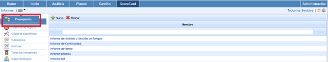 Propagate: Once the desired reports are selected, it allows propagating them to the selected sub-entities.