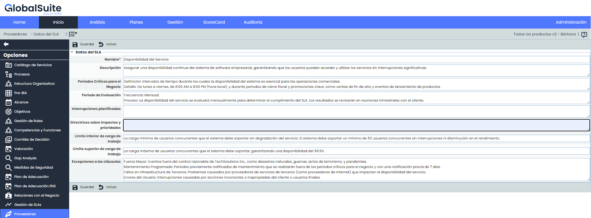 Critical Periods for the Business: Allows indicating if, due to the nature of the service, there is a more sensitive time period where SLA compliance may be affected.