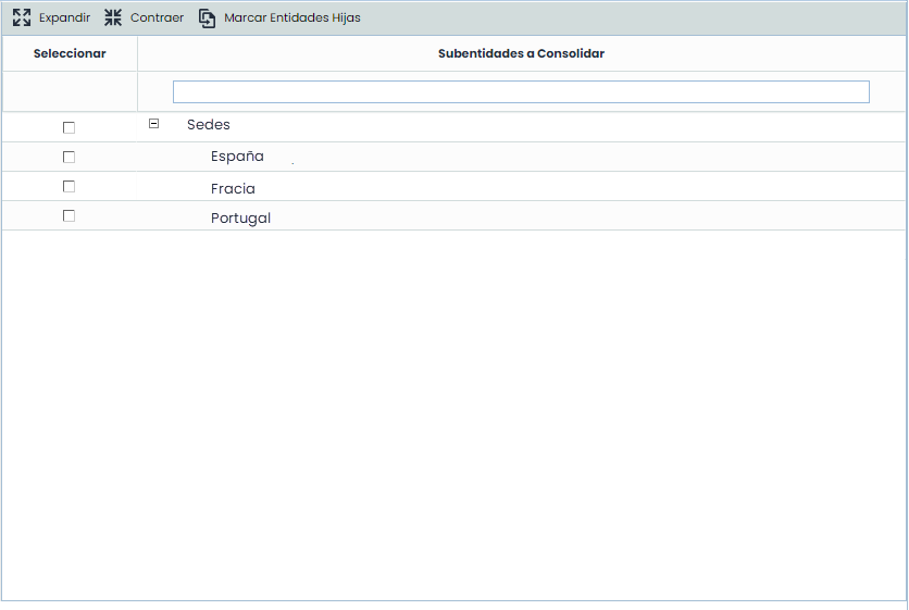 Sub-entities Table: Offers the possibility to filter suppliers defined in the selected sub-entities.