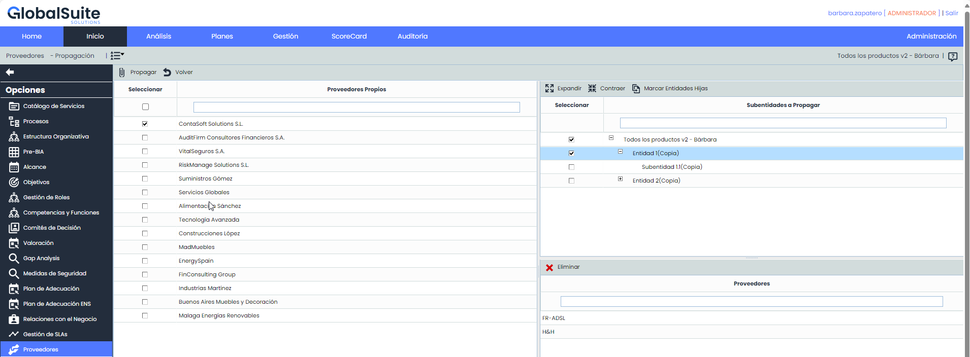 This option allows propagating the suppliers defined in the parent company to the sub-entities that depend on it.