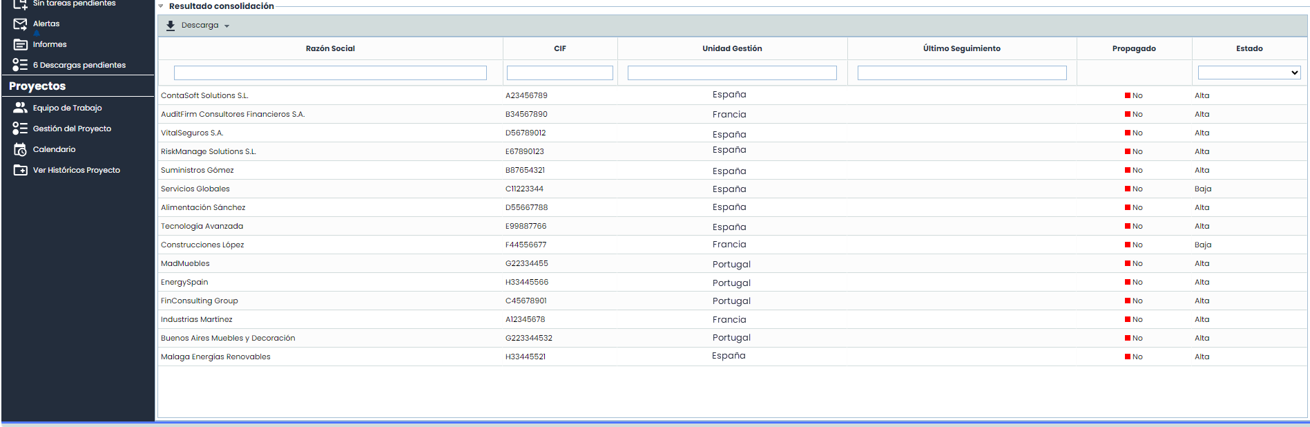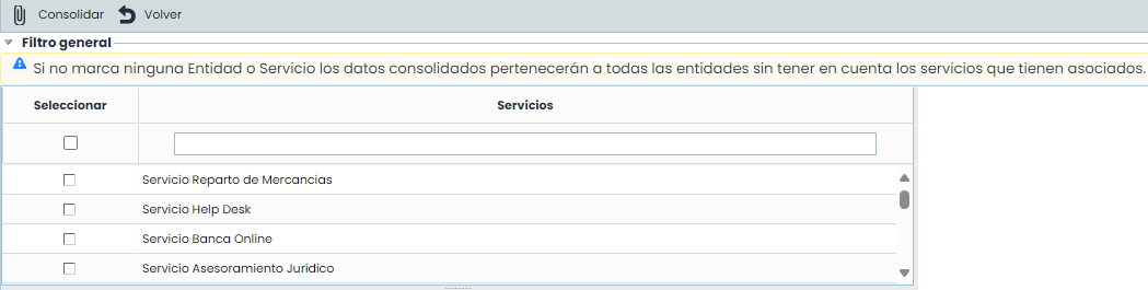Consolidate: Once the button is clicked and based on the established filters, it allows summarizing the suppliers in the lower table.
