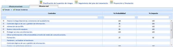 The projection and simulation option allows the user to initially check how the implementation of the controls defined in the system would affect (Projection) or to verify in real terms how they have affected once implemented (Simulation).