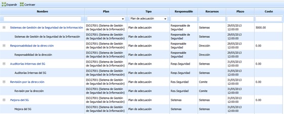 Allows defining the necessary actions for the implementation of the control by clicking on the 'New' button. This generates a new entry in the table that allows defining the following parameters: