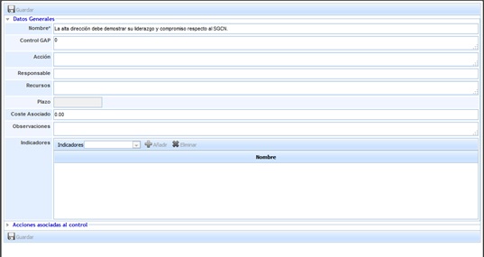 If we click on the link of a control, a form is displayed where we can define the following concepts: