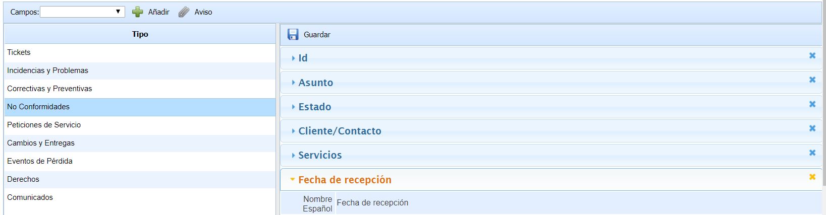 This option allows us to define which fields and in what order we want them to appear in the Main Table. This table would be the general list for each type of Ticket.
