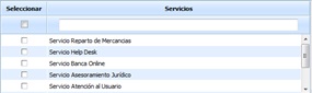 Tabla Servicios: Permite al usuario filtrar las auditorías asociados a los Servicios seleccionados.