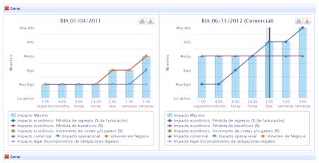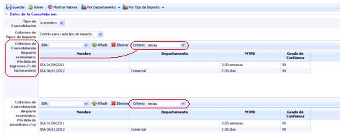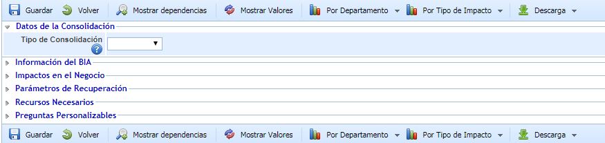 La opción de BIAs consolidados permite fusionar los BIAs individuales realizados sobre un mismo proceso, para que el usuario pueda tener una visión global del análisis de impacto sobre un único proceso.