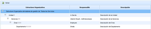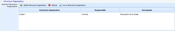 Ver en Estrucutura Organizativa: Permite al usuario visualizar las dependencias de la unidad asociada, tal y como se muestra en la siguiente imagen.