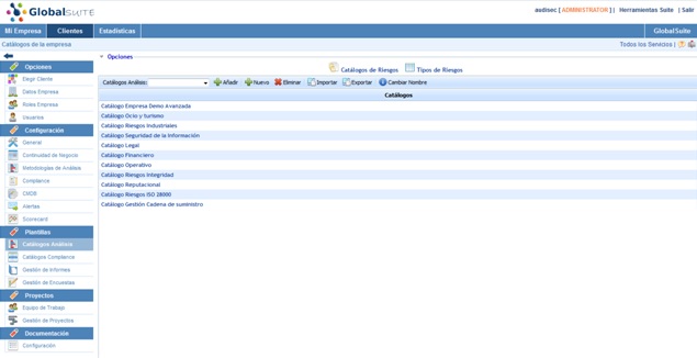 - Importar: GlobalSuite® posibilita importar catálogos de amenazas ya creados en formato CSV.