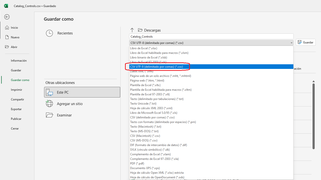 Importar: GlobalSuite® posibilita importar catálogos de controles ya creados en formato CSV.