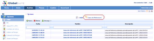 La opción de Líneas de Referencia permite al usuario generar y almacenar un archivo con el estado de los elementos de configuración en el momento de la creación. Esto permite llevar un control de los cambios en la configuración y relaciones del elemento tras la creación de las RFC’s.