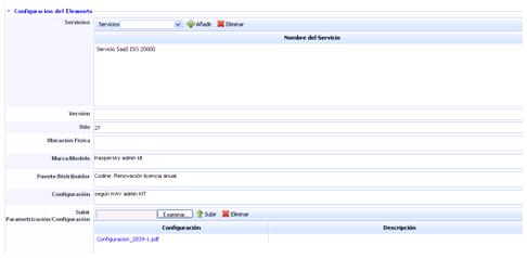 Configuración: Permite identificar la configuración especifica del elemento y que no está incluida en los campos generales.