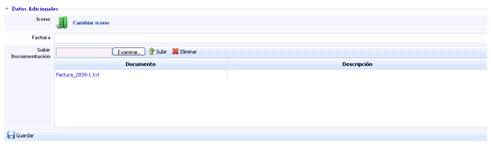 Configuración: Posibilita subir un archivo o factura relacionada con el elemento.
