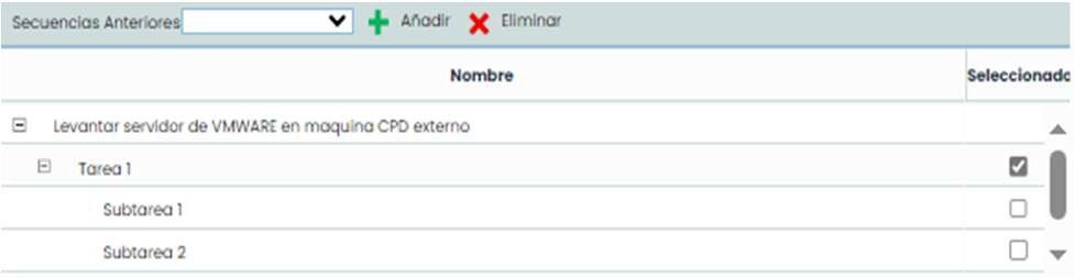 Dentro del cuadro “Secuencias Anteriores” también se podrá seleccionar la tarea o secuencia entera tras la que se tiene que realizar la secuencia seleccionada en la opción de la izquierda.